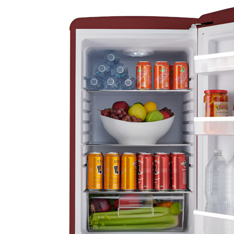 7 Cu. Ft. Storage Capacity: Maximize your storage without taking up extra space. With 7 Cu. Ft. of capacity, this vintage fridge offers ample room for all your fresh and frozen essentials.
